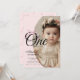 Modern Miss Onederful Pink Bow 1st Birthday Photo Invitation