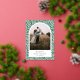 Modern silver foil photo holiday cards with a background of mistletoe leaves and silver foil berries, with your photo in an arch shape. Personalise further with the editable headline, sign off and back message.