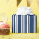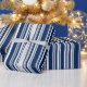 Stylish custom wrapping paper features a modern pattern of mixed indigo and white stripes. The navy blue and white lines vary in width. Perfect for birthdays, graduations, and other occasions.
