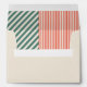 This festive yet modern holiday envelope features a neutral colour background and simple typography on the front. On the inside is a mix of thick / thin stripes in warm red, ochre yellow, and dark green. Your name and return address are printed on the back flap. See the collection for more items.