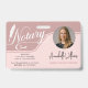 Modern, elegant Notary badge. Design features typography script ''Notary'' with elegant feather pen , your photo, details on pink and rose gold background on the front. Personalise further with additional information & details on the back. Perfect for Notary Public, Mobile Notary, Loan Signing agents etc.