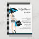 Start your event off right with our mod & trendy black & turquoise blue Baby Shower invitation featuring a mod mum holding a baby shopping bag and an umbrella. Just personalise with your information and you're all set to go! Matching items including baby shower postage, favour stickers, thank you cards & thank you stickers are also available in our shop. ©Blackleaf Studio