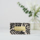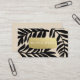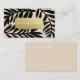 A striking,modern and artistic design. Hand drawings of tropical leaves turned into digital shapes . The black palm leaf is a contrast against the tan beige background. A gold look brush stroke to highlight your name or business and make it centre of attention. The back is sleek and minimal, giving elegance and class.