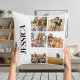 Create your own personalised photo collage throw pillow featuring 6 of your favourite pictures and custom monogram name.