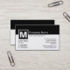 A modern monogram business card template with a colour or toned header with a white bordered square for a monogram letter, or alternatively could be used for a logo. Company Name in the header with the business type etc underneath. Name and Job title to the left aligned under the monogram box along with telephony details. address, email and website URL to the right. The reverse side also has the colour or tonal header area but without the monogram/logo box and has otherwise been left blank, which can be left as it is serving as a useful area for writing notes etc or additionally customised. The template is constructed so the colour of both the headers and the background of the monogram/logo box can be altered by changing the background colour. An attractive modern business card suitable for many types of business.