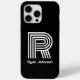 This modern monogram black iphone 15 pro max case is trendy yet and classic. It features your first or last initial in a bold trendy font and your name in a coordinating classic font in white. It's simple and minimal.