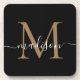 Modern Monogram Black Gold Feminine Script Name Beverage Coaster