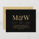 Modern Monogram Black Gold Wedding Invitation Postcard