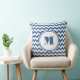 Modern Monogram Blue Chevron Pattern Cushion
