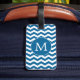 Modern Monogram Blue Chevron Stripes Pattern Luggage Tag