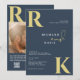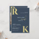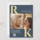Modern Monogram Bright Bold Navy Blue Photo Invitation