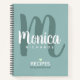 Bluish green notebook with a cool and stylish monogram in a script font-style, for a special chef... a nice idea for your favourite recipes. Looking for a gift that’s both meaningful and useful? A personalised idea is a perfect choice. With the recipient’s name or a custom title printed on the cover, it’s a one-of-a-kind way to organise treasured recipes—whether they’re family classics, new favourites, or secret creations. It’s ideal for collecting notes passed down through generations... ready for everyday cooking or special occasions.