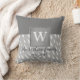 modern monogram custom pillow grey and white painted teardrop pattern with text to personalise for unique home decor.