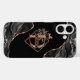 Elevate your phone with our elegant Black Agate Marble Case, featuring sleek rose gold accents and a refined, modern floral-adorned geometric monogram frame. Crafted for both beauty and durability, this case combines a luxurious black marble pattern with delicate floral details, accented by a stylish touch of rose gold. Personalise it with your first name or last name for a unique statement piece that’s as individual as you are. Perfect for those who value sophistication and a personal touch. (c) The Happy Cat Studio