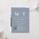 Modern Monogram Dusty Blue QR Code Rsvp Wedding Invitation
