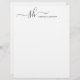 Modern personal monogram letterhead with trendy script calligraphy and minimalist typography design for your custom stationery.