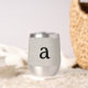 Modern Monogram Elegant Linen Look Initial Name Thermal Wine Tumbler. Easy to customise simple and classic typography monogram. Perfect monogrammed name gift idea! Note - No actual linen is used in the creation of this design or making of this item.