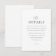 This sleek and elegant wedding details enclosure card is the perfect addition to your modern wedding suite. With a clean and minimalist design using gorgeous script and serif fonts, it adds a touch of sophistication to your wedding stationery. The card features reception details and a note informing guests to visit the wedding website for more information, all in a contemporary style.