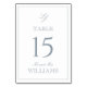 Modern Monogram Elegant Script Dusty Blue Wedding Table Number