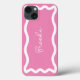 Modern Monogram Elegant Script Pink Wave Edge Case-Mate iPhone Case