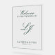 Welcome your guests with understated elegance using our Modern Monogram Classic Emerald Green Script Welcome Acrylic Sign. This sophisticated piece features a sleek monogram and graceful script in a serene Emerald Green, perfect for setting a refined tone at your wedding entrance.