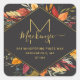 Modern Monogram Fall Foliage Return Address Square Sticker