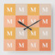 Modern monogram geometric colour block square wall clock