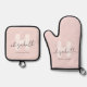 Modern Monogram Girly Script Blush Pink Initial Oven Mitt & Pot Holder Set