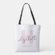 Modern Monogram Girly Script Blush Pink Initial Tote Bag. Easy to customise stylish, trendy, and elegant script typography monogram. Perfect monogrammed name gift idea!