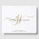 Modern Monogram Gold Script Name White Guest Book