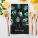 Modern Monogram Green Botanical Pattern Tea Towel