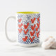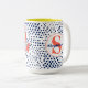 Modern Monogram Hearts and Blue Dots Patterned Two-Tone Coffee Mug