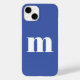 Modern lower case typography minimalist monogram initial design which can be changed to personalise. White on a blue background.