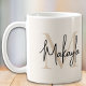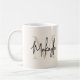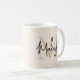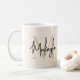 This modern coffee mug features a monogram and name in stylish script calligraphy on a neutral beige background. It is easily customizable.
