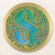 Modern Monogram Initial Gold Letter and Turquoise Round Paper Coaster