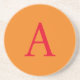 Modern Monogram Initial Letter Trendy Orange Red Coaster