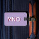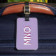 Modern minimalist monogram initial design which can be changed to personalise, along with the details on the reverse. White on a lilac purple background with a burgundy drop shadow.