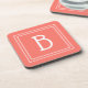 Modern Monogram Initial Template Simple Coral Coaster