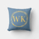 Modern Monogram Initials Dusty Blue Gold Circles Cushion