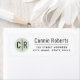 Modern, minimal return address labels featuring your monogram initials separated by a vertical line on a light sage green (or custom colour) circle. Template fields for name and address.