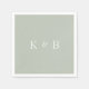 Modern Monogram Cocktail Napkin. Light Sage and White.