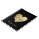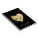 Black (custom-colour) background with a cool and stylish monogram printed in a script font-style...a nice notebook for her with the image of a faux gold heart, to personalise with name, initial and special subject