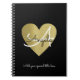 modern monogram love heart with her name black notebook