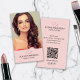 Create a professional and modern business card with a custom photo on the front and personalised details, plus a scannable QR code on the back for easy networking, and editable social media icons. Easily adjust fonts, colours, background, and layout to perfectly match your style. Ideal for makeup artist, hair stylist, Beauty Salon, and businesses looking to offer a thoughtful and professional presentation!