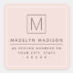 Elegant light blush pink or any colour return address label with your custom monogram initial and your return address in a modern sans-serif font. All colours are customisable. Move and resize elements and text with the design tool.