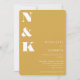 Modern Aesthetic Monogram Bold Typography Wedding Invitation in Mustard Yellow