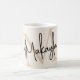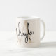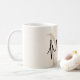 This modern coffee mug features a monogram and name in stylish script calligraphy on a neutral beige background. It is easily customizable.