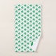 Modern SHAMROCK Bath Towel set, designed with an all-over shamrock pattern. The Irish Flag is set within a circle in the corner of each towel. There is CUSTOMIZABLE curved text at the top and bottom of the circle, plus a MONOGRAM which is also customisable. This text can be replaced with a welcome message and/or personalised with your name, or name of your establishment. Ideal for your guests or patrons on St Patrick's Day.