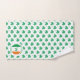 Modern SHAMROCK Bath Towel set, designed with an all-over shamrock pattern. The Irish Flag is set within a circle in the corner of each towel. There is CUSTOMIZABLE curved text at the top and bottom of the circle, plus a MONOGRAM which is also customisable. This text can be replaced with a welcome message and/or personalised with your name, or name of your establishment. Ideal for your guests or patrons on St Patrick's Day.