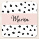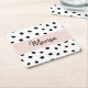 Modern Monogram Name | Pastel Pink & Black Dots Square Paper Coaster